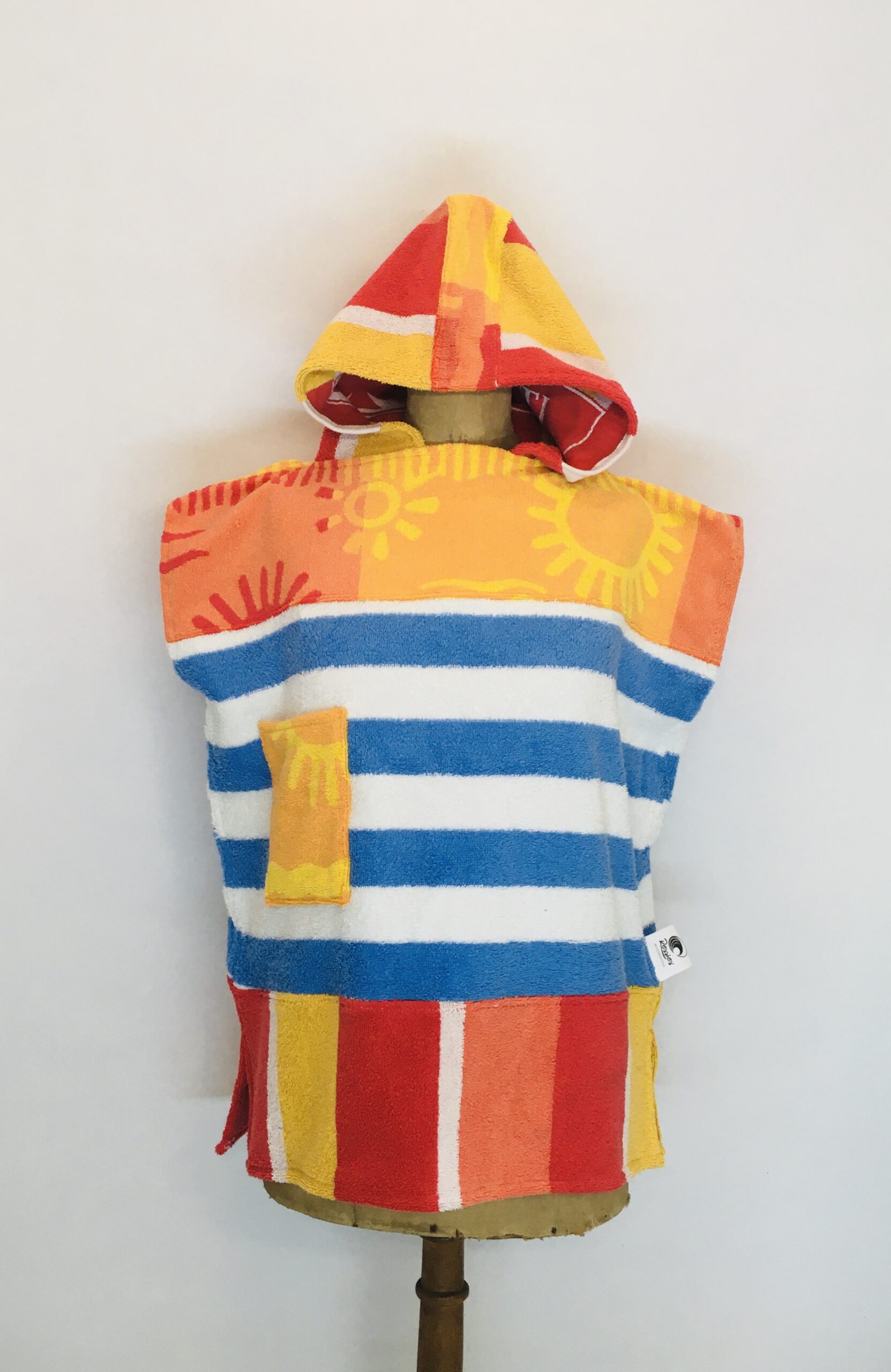 De maten kunnen enkele centimeters afwijken i.v.m. de handmatige samenstelling van de poncho. Al onze poncho’s zijn namelijk ‘one of a kind’ unieke stuks en worden zorgvuldig samengesteld uit een selectie van kleurrijke en frisse handdoeken. Is deze poncho voor jou gemaakt, wees er dan snel bij, het is de enige van zijn soort!