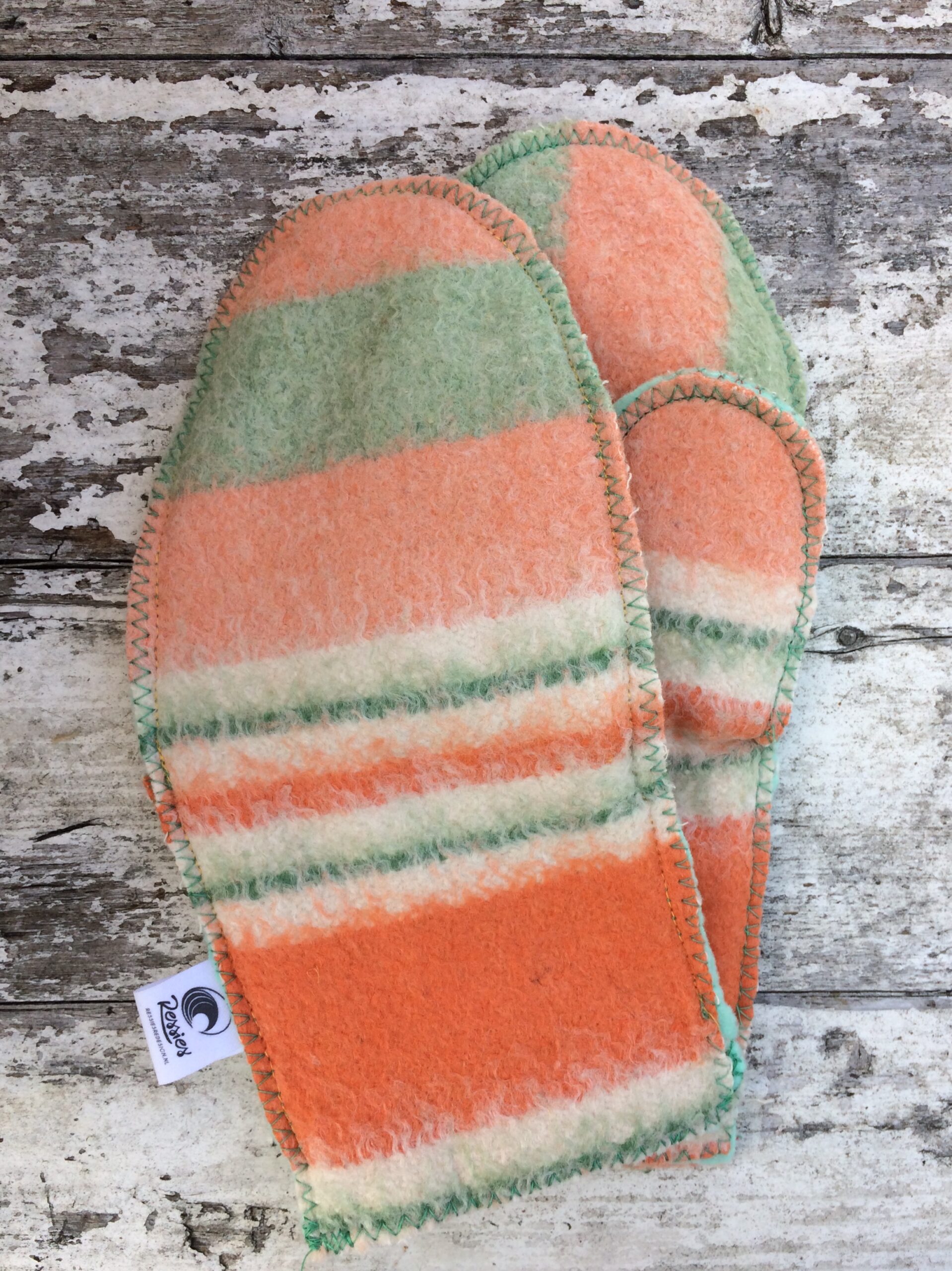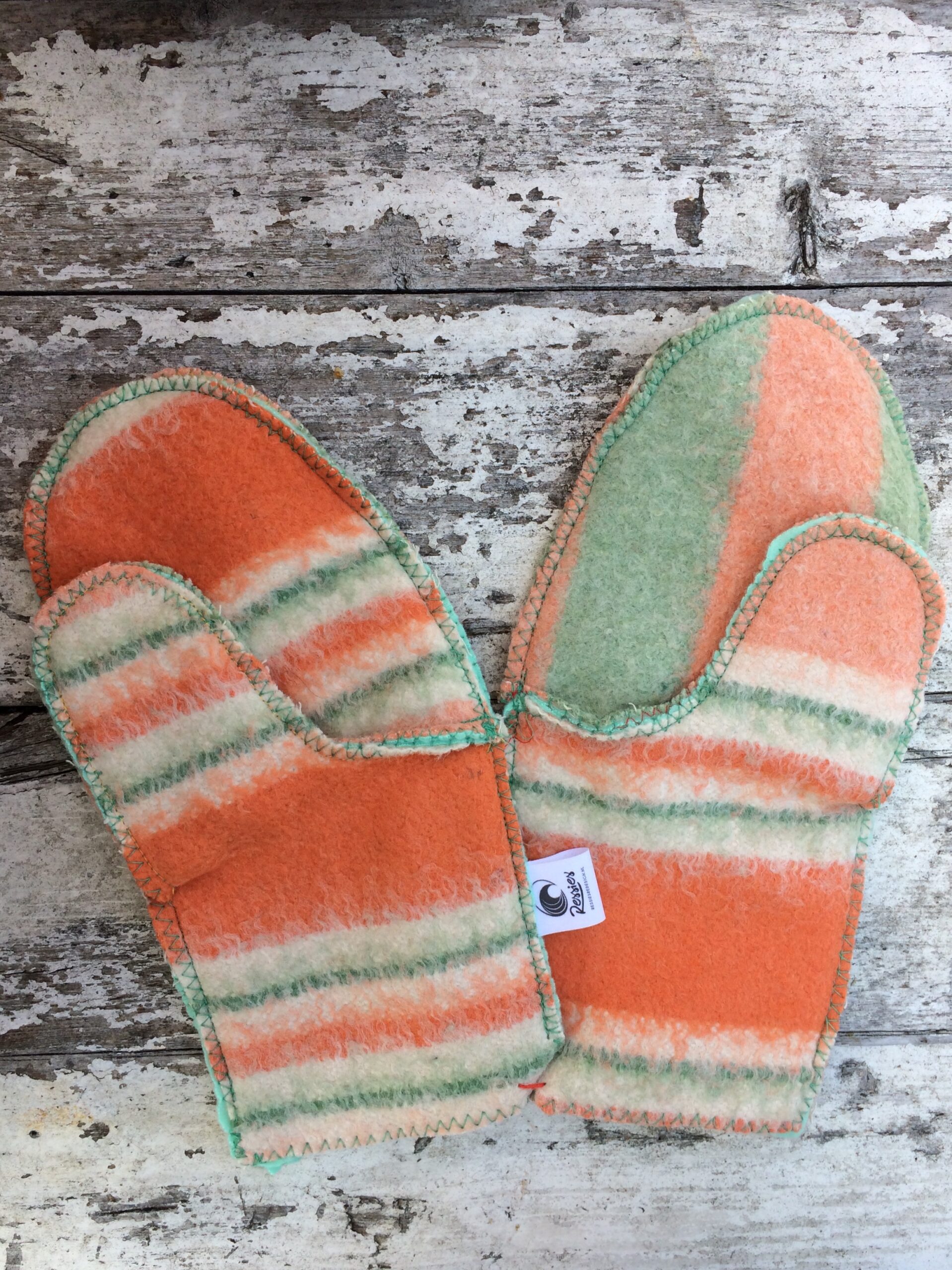 Wanten gemaakt van wollen dekens, gevoerd met fleece.