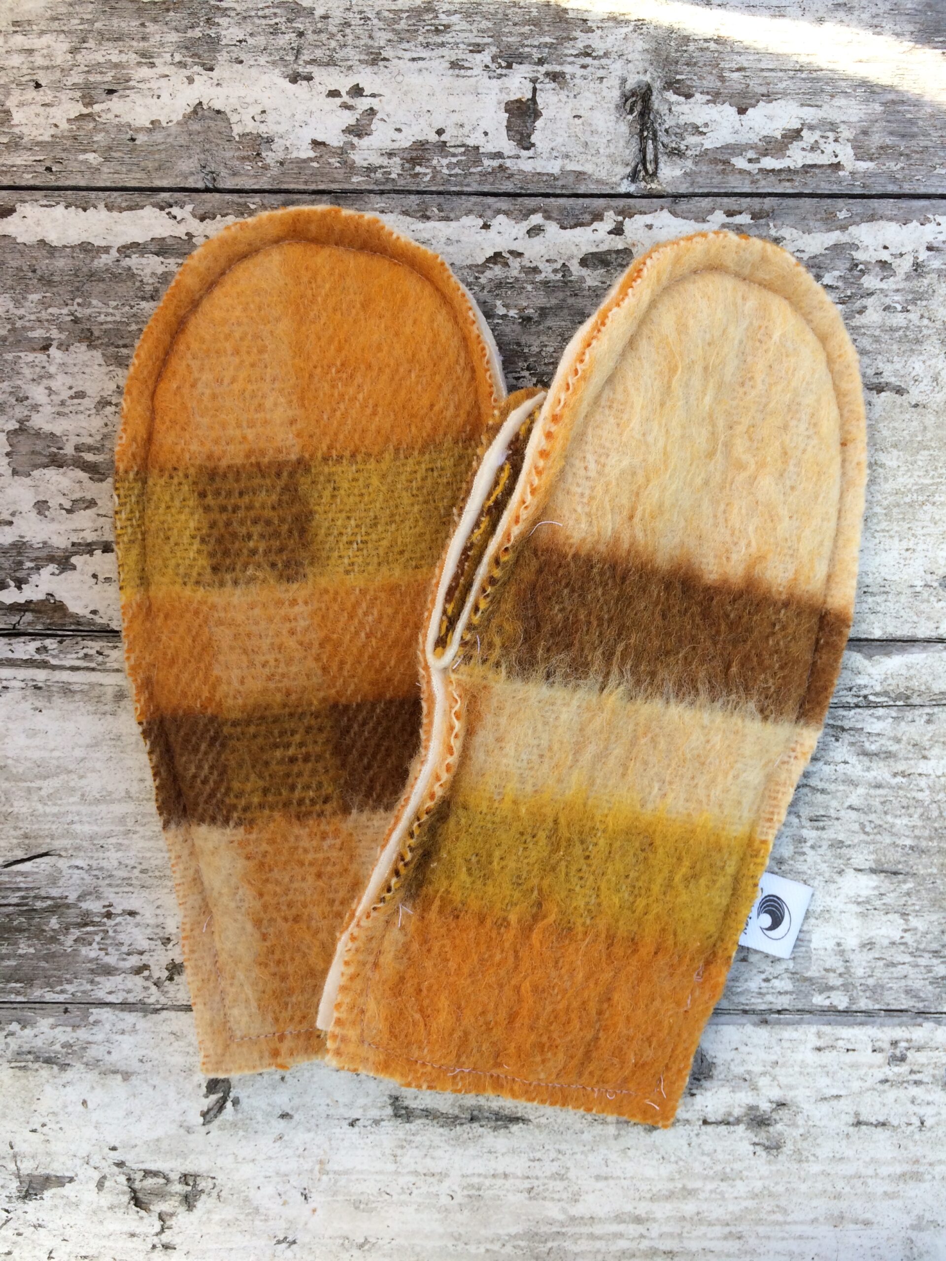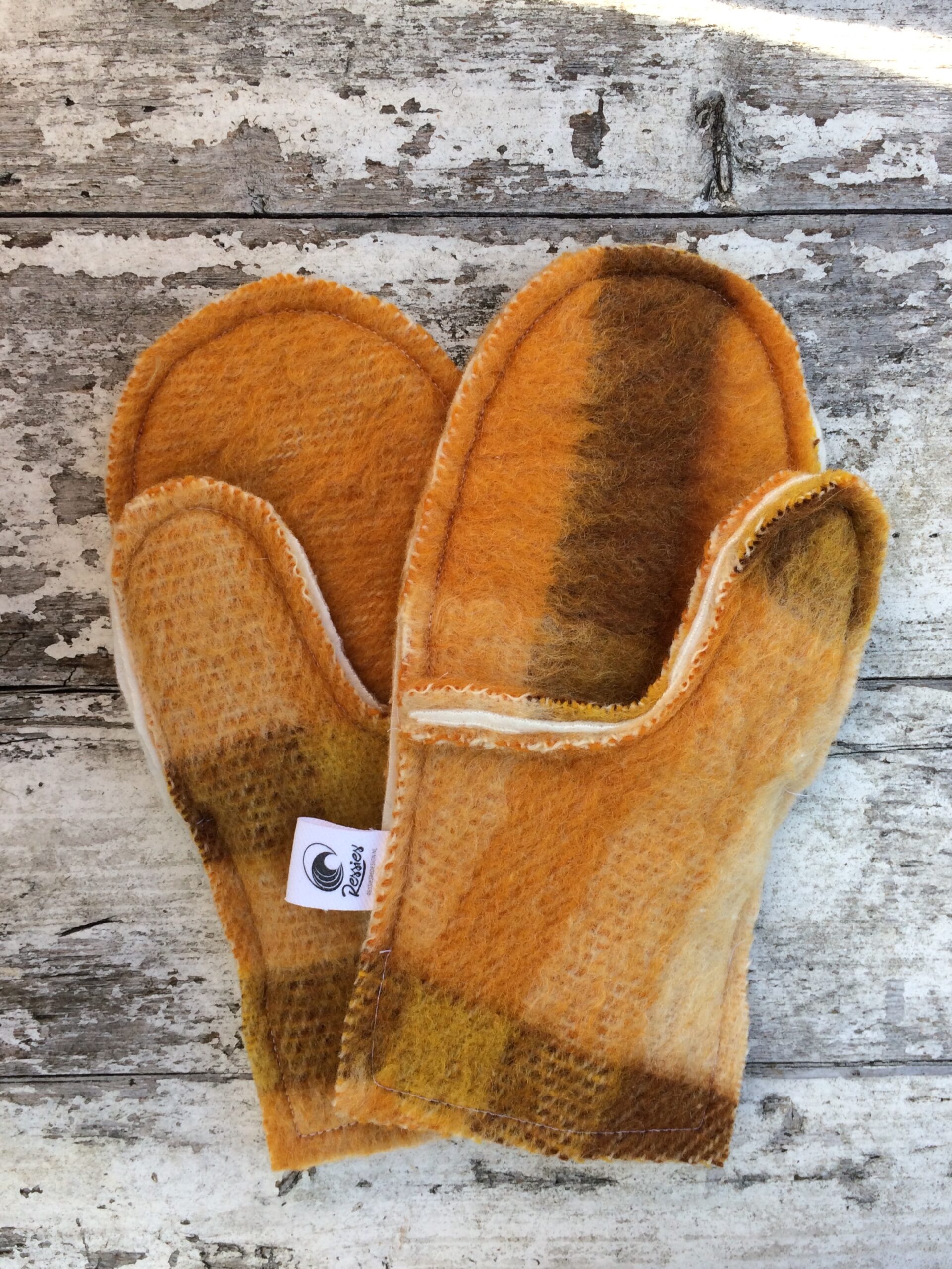 Wanten gemaakt van wollen dekens, gevoerd met fleece.